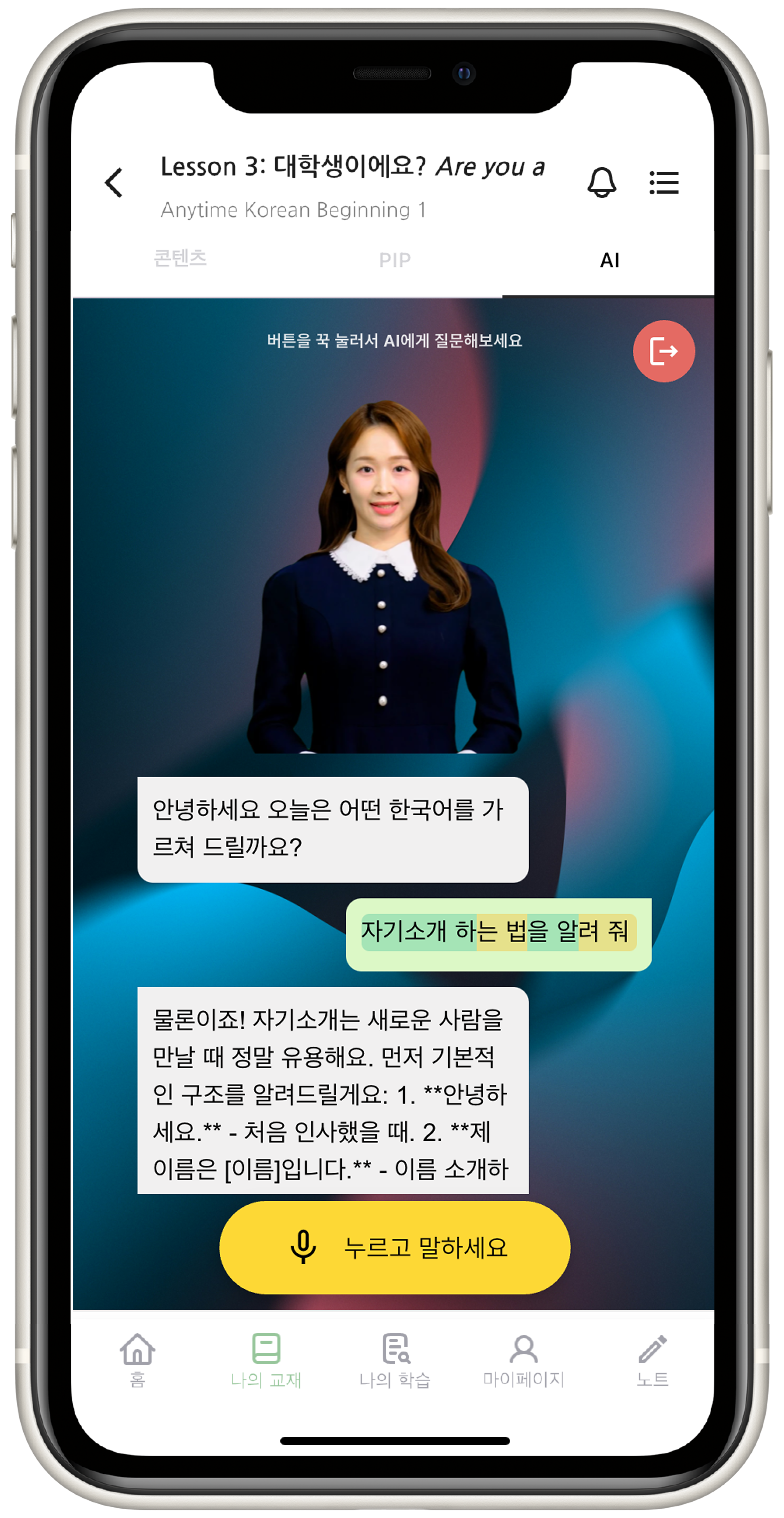 학생들은 언제 어디서나 온라인으로 학습할 수 있으며, 개인 맞춤형 교재와 커리큘럼을 제공합니다. 특히 AI 기반 음성인식(STT)과 언어모델(LLM)을 활용해 발음 연습과 피드백이 가능하며, 원어민 수준의 정확한 발음으로 자신감을 키울 수 있습니다.
