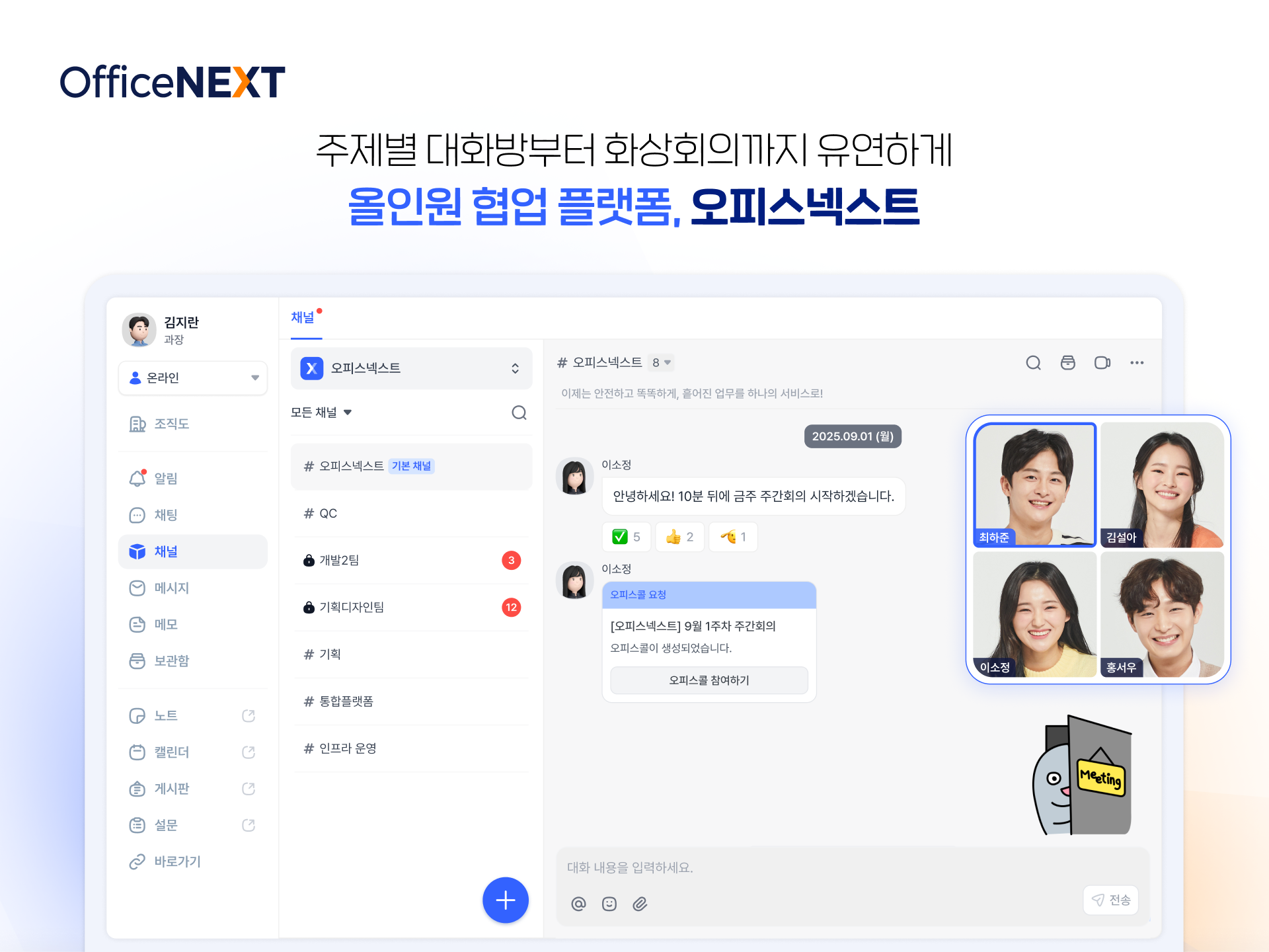 오피스넥스트(OfficeNEXT)는 흩어진 업무를 하나의 서비스로 연결하는 올인원 협업 플랫폼입니다.