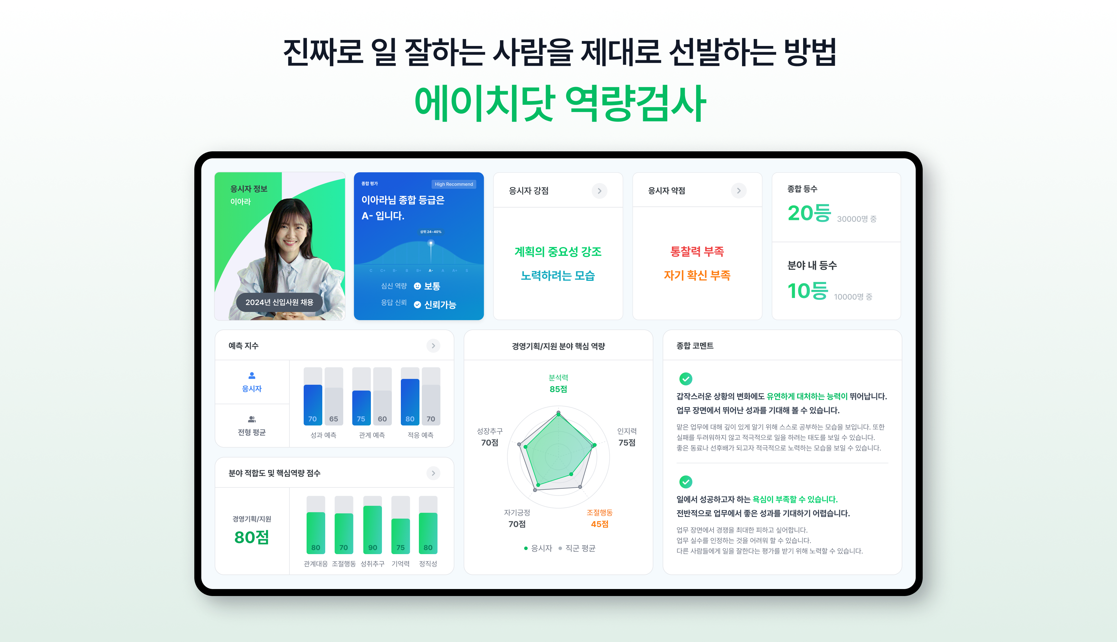AI역량검사로 인재에 대한 선발과 AI에이전트로 채용과 대한 모든 고민을 해결합니다.